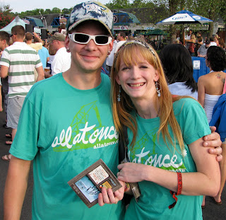This is what you see when you come to a Jack Johnson show as you walk in. They are everywhere. It is like a game you are playing to get your card stamped from the non-profit booths so you can have a chance to win a pair of on the stage tickets. At the last show I watched Jack draw the winner out of the box. A cool concept.